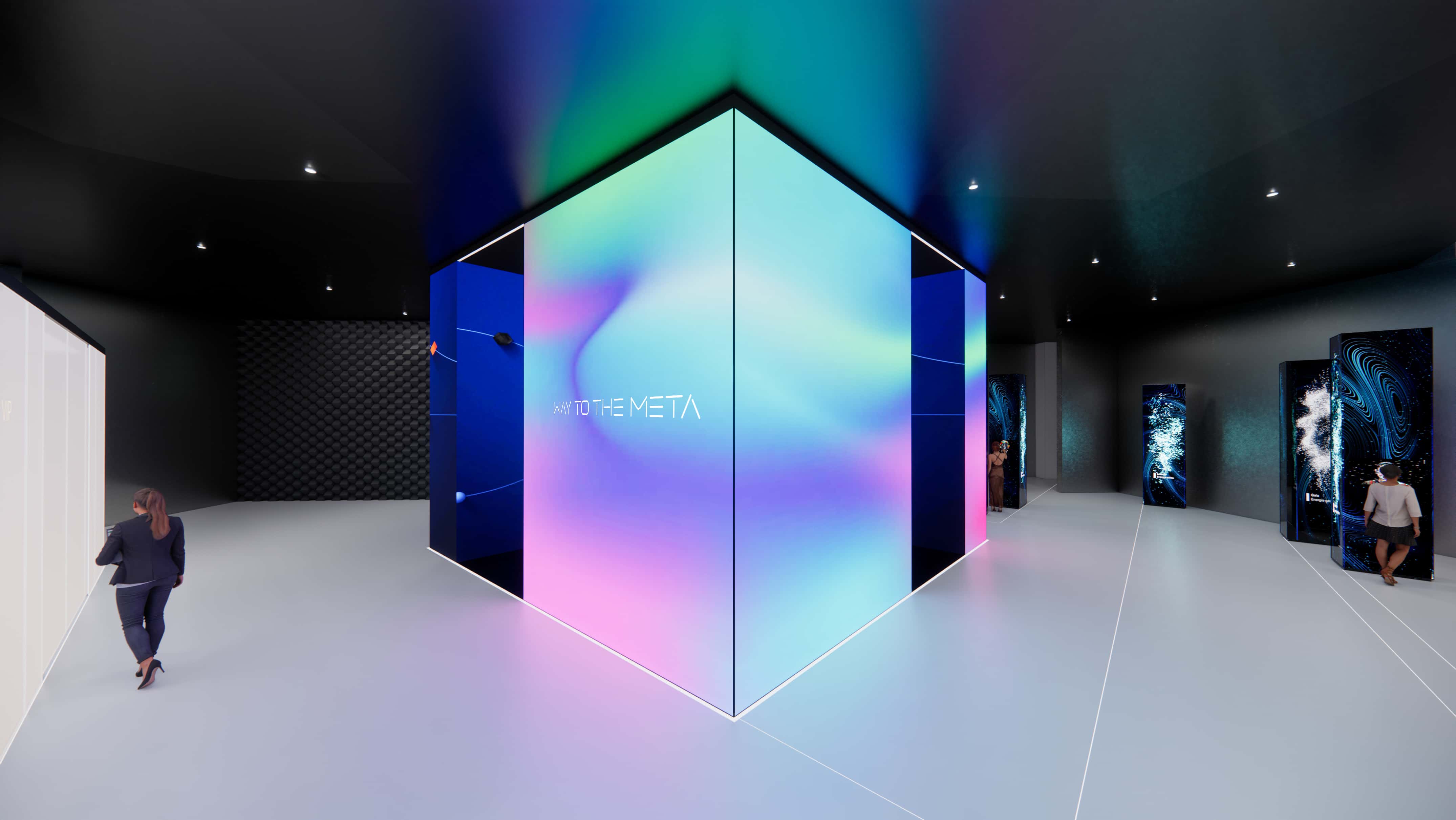 Entering the interior of the cube,four sets of large screens can be activated through the central control device to display product related information according to audience preferences.