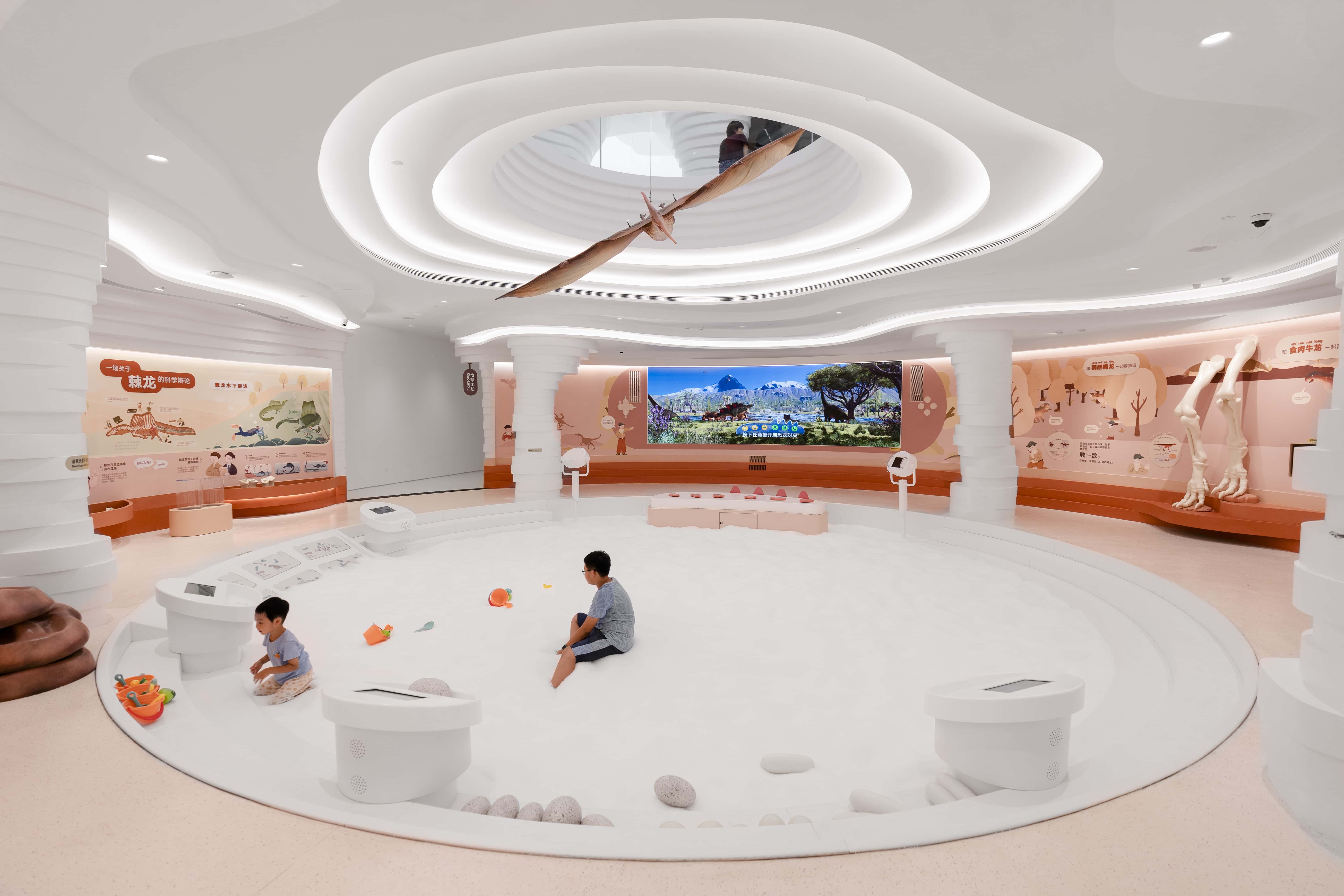 Inside the museum,the design elements of graphic deconstruction are applied as a whole,and interactive exhibits are placed in the rippling waves,presenting scientific principles.
